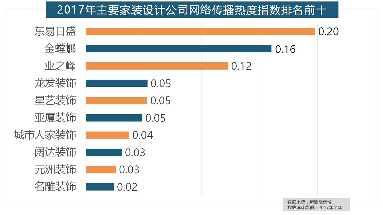 伴跟着我国度拆市场的繁荣,据新浪微舆情对2017年我国次要家拆设想公司大数据阐发显示,东易日盛正在过去的一年中收集热度指数最高,金螳螂、业之峰、龙发粉饰、星艺粉饰紧随其后。此外,名雕粉饰、亚厦粉饰、城市人家粉饰、阔达粉饰、元洲粉饰也榜上出名,位列年度家拆设想公司热度排行榜六至十位。